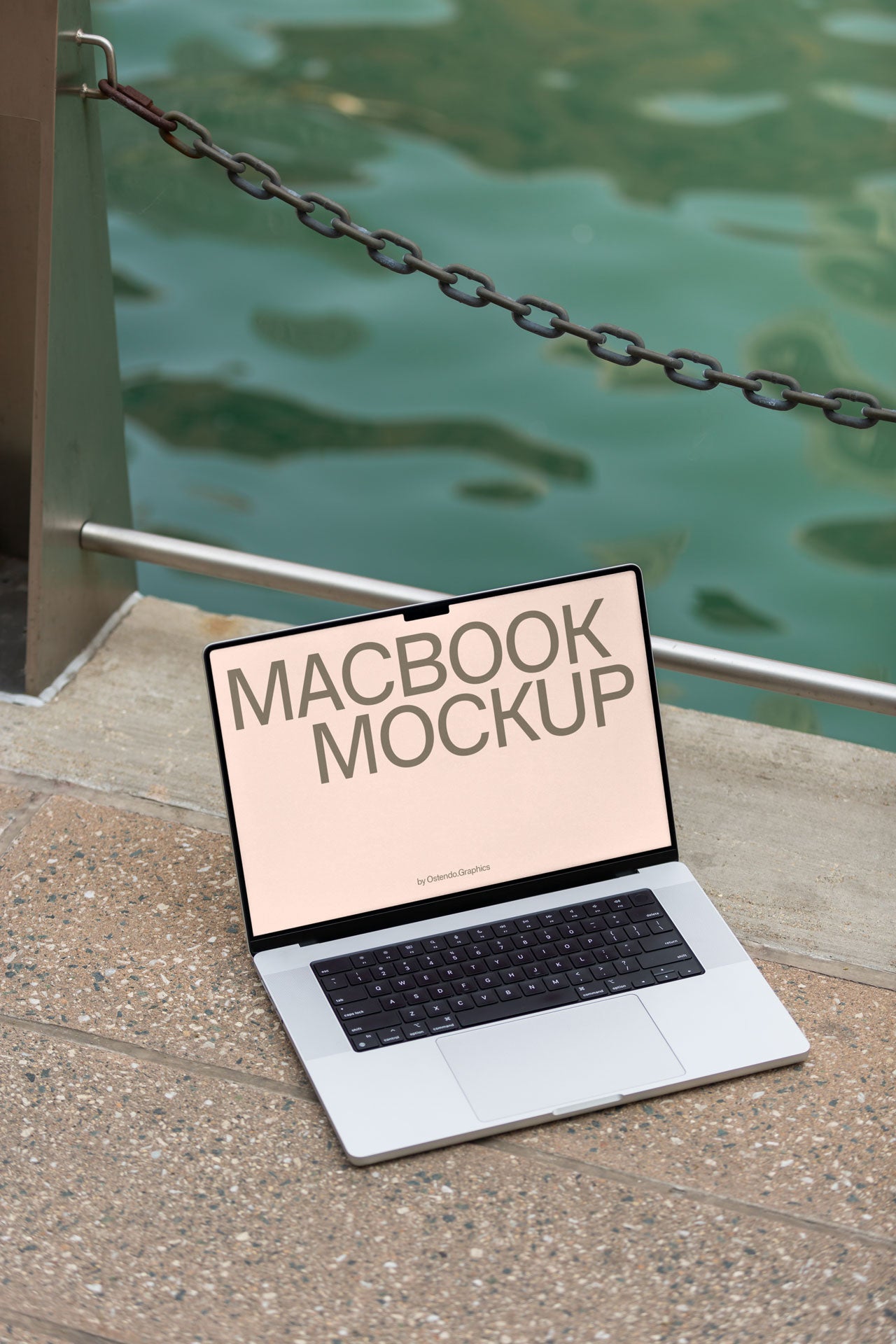 DD47 Macbook Pro Mockup on Stone Courtyard (Free)